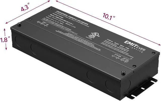 SPECIFICATIONS: cUL us Listed,Class P, Type HL, FCC compliant, damp location rated. Free air convection cooling within low profile compact aluminum housing (only 1.8-inch tall). Mounting foot at both ends allows for screw down upon flat surface for complete installation.