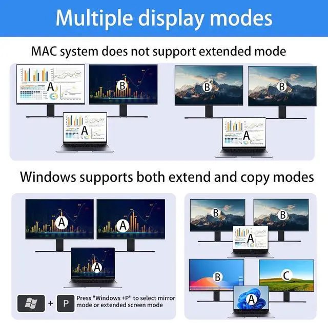 USB C HDMI DP KVM SwitchUSB C HDMI DP KVM Switch Dual Monitor allows you to use 1 set of mouse, keyboard to control 1 laptop and 1 computerHDMI+DP INPUT, compatible printer, scanner, webcam, each computer is displayed on 2 HDMI monitors. KVM Switch USB C 2 computer is the first choice for office and home