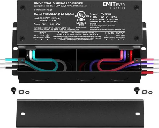 EMITEVER 30W Dimmable LED Driver, 24V Triac Dimmable Power Supply, AC to DC Transformer for LED Light, Compatible with Lutron and Leviton Dimmer, Waterproof IP67 and UL Listed, Class 2