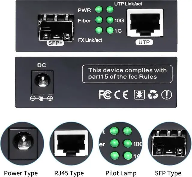 10GB RJ45 to SFP+ Port Median Converter: Supporting Auto-MDI/MDIX.10G base-T RJ-45 UTP port will autoadapt (autosense) to 1000Base-T, 2.5G Base-T, 5G Base-T and 10G Base-T connection at user side, but fiber port slot accepts only 10G SFP+ (10 Gigabit) SFP+ transceivers only