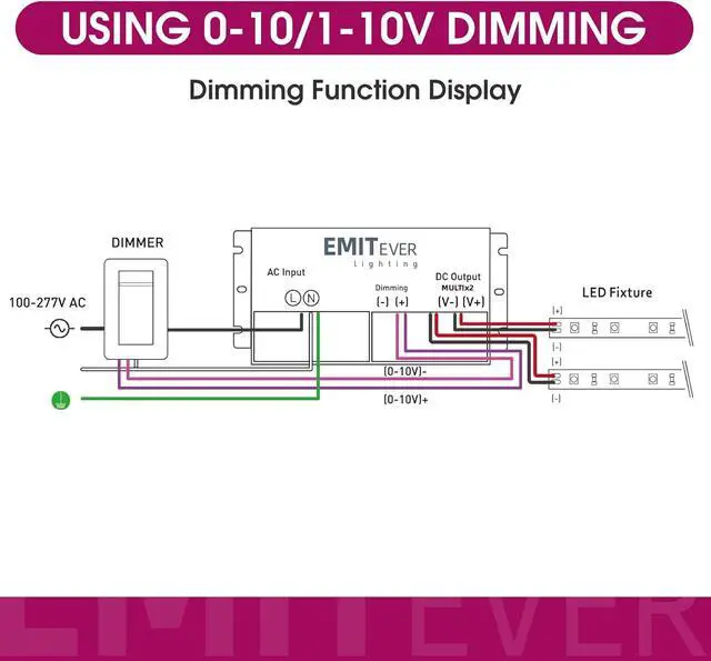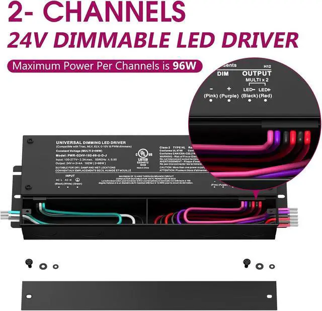 Premium Commercial Construction: The 192W dimmable led driver is 2-Channels 24V dimmable power supply,maximum power per channels is 96W.Encased in a low profile aluminum enclosure that includes knockouts for easy installation in any low voltage application.