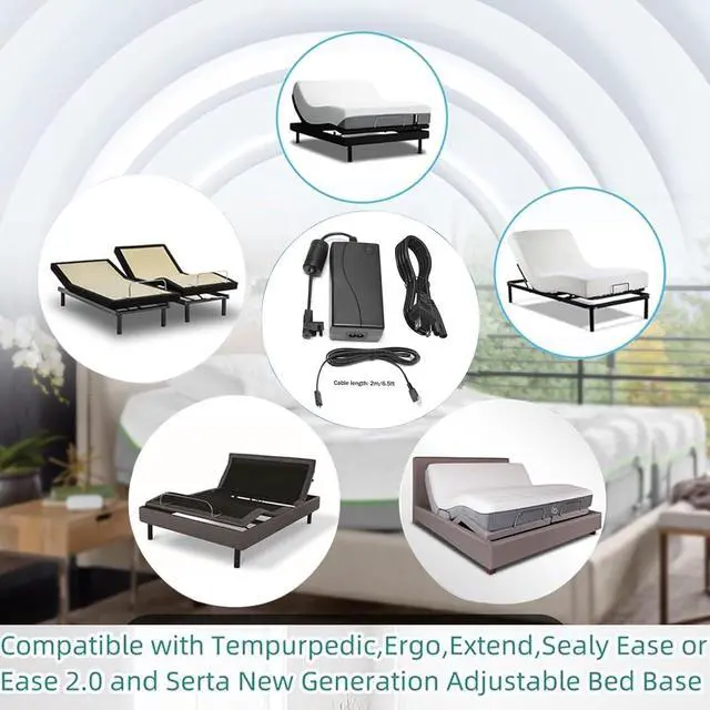 Package: electric bed power supply replacement part consists of three parts: 1 * adjustable bed replacement part power adapter, 1 * AC adjustable bed part power cable (1.5m) and 1 * DC electric bed power cable replacement part (2m). Please determine your unit model, output and plug size before purchasing.