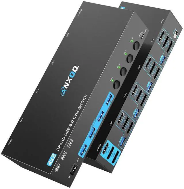 Multi-Device ConnectivityDisplayport + HDMI KVM Switch 4 Computers 3 Monitors supports connections to up to 4 computers, allowing smooth switching with ease. 4 Port KVM switch enables the sharing of up to 3 monitors and a single USB devices set among the connected computers, enhancing efficiency and organization.