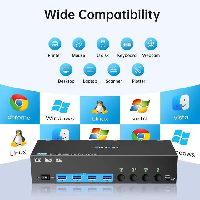 8K Crystal Clear HD VisualsDisplayport: support resolution up to 8K@30Hz/4K@144Hz; HDMI: support resolution up to 8K@60Hz/4K@120Hz. Note: the final result depends on computer, cables and monitor. 3 Monitor KVM Switch HDMI + Displayport is a superior choice for work, gaming, multimedia presentations, study and so on.