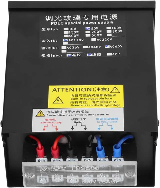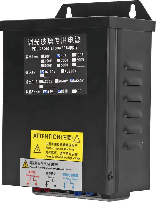 APPLICABLE SCENES: 50W intelligent power supply, specially designed for PDLC glass, used for projection equipment, doors, and curtain walls.