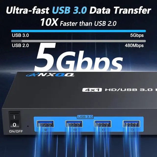 5Gbps USB 3.0 Data Transmission With a USB 3.0 data transfer speed of 5Gbps, which is ten times faster than USB 2.0, this USB KVM Switch greatly improves work efficiency. It works perfectly with cameras, camcorders, printers and more, backward compatible with USB 2.0 devices. Note: To ensure that the USB function works properly, each computer needs to be connected to the KVM with a USB cable (no cross-connections). Say goodbye to endless waiting and anxiety, life can be swifter!