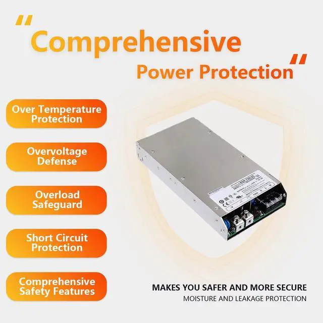 High Efficiency with Active PFC: This power supply achieves up to 92% efficiency and incorporates active power factor correction, significantly reducing energy consumption and ensuring stable, cost-effective operation in demanding industrial environments.