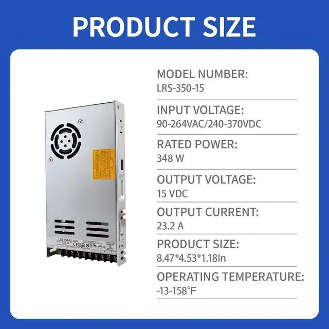 Plug-and-Play for Space Savings Delivers a stable 15V/23.2A (348W) output, perfectly matching PLCs, industrial control computers and other equipment. The ultra-slim 1U form factor (30mm) saves valuable space in control cabinets