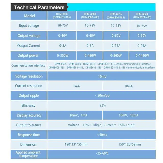 Can automatically stop output when over-temperature, Automatically save parameters when power is off.