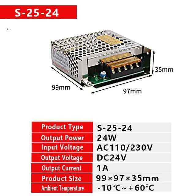 Switching Power Supply Light Transformer 24W AC 110V 220V to DC 12V/2A 24V/1A Power Supply Source Adapter S-25-12 S-25-24 (Color : S-25-24)
