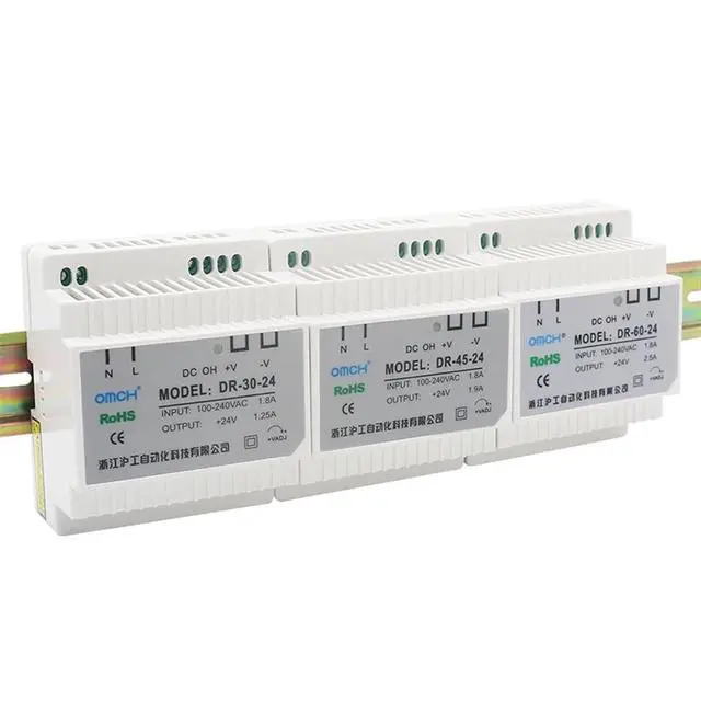 1PCS 35/45/60W DIN-Rail Switching Power Supply Single Output 5V 12V 24V AC Converter Power Switch Input 85-264VAC(45W 24V)