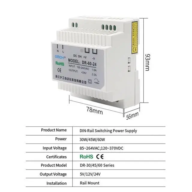 • 1PCS 35/45/60W DIN-Rail Switching Power Supply Single Output 5V 12V 24V AC Converter Power Switch Input 85-264VAC