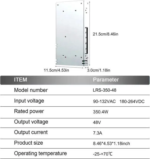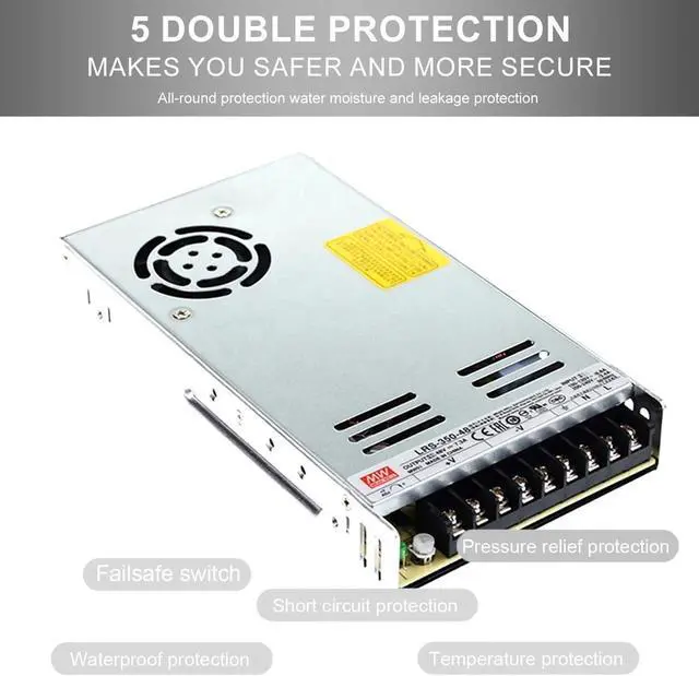 Precise Matching & Comprehensive Protection: 48V 7.3A 350W accurate output, compatible with PLC and industrial loads; 4-in-1 protection (short circuit/overload/overvoltage/overtemperature), intelligently shuts down in abnormal conditions, resumes with restart to avoid damage to motors and control modules.