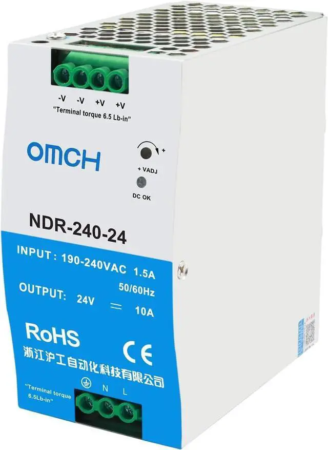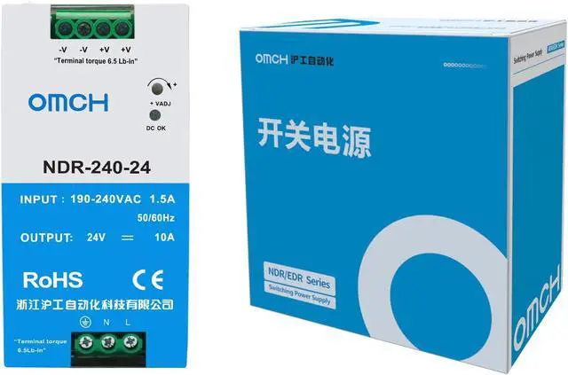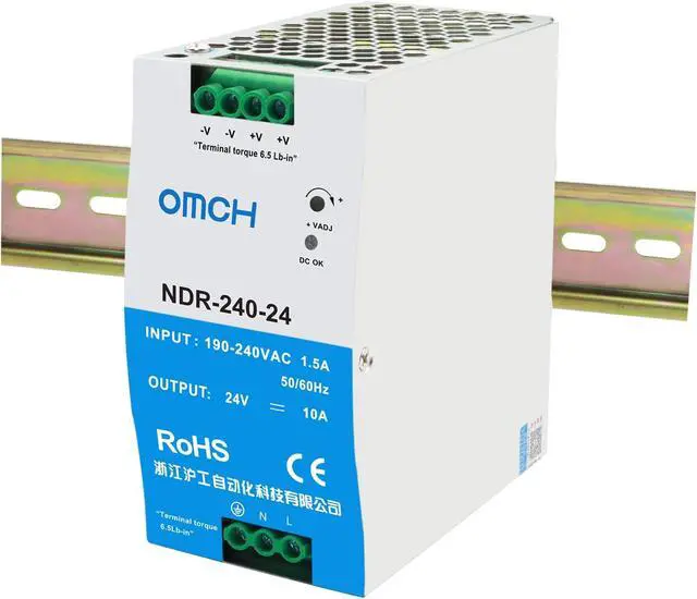 The NDR-240-24 is a compact and reliable 240W switching power supply designed for industrial control systems. It delivers a stable 24VDC/10A output with high efficiency up to 88.5% and features a universal AC iProfessional 240W DIN Rail Power Supply for Industrial Automation