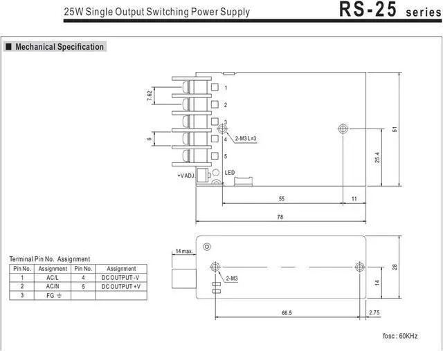 Power 25W Single Output Switching Power Supply AC-DC RS-25-12 12V 2.1A