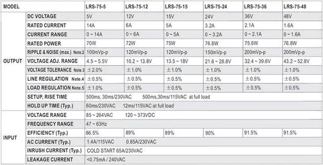 RWRAPS LRS-75 Switching Power Supply 12V 6A / 24V 3.2A 75W
