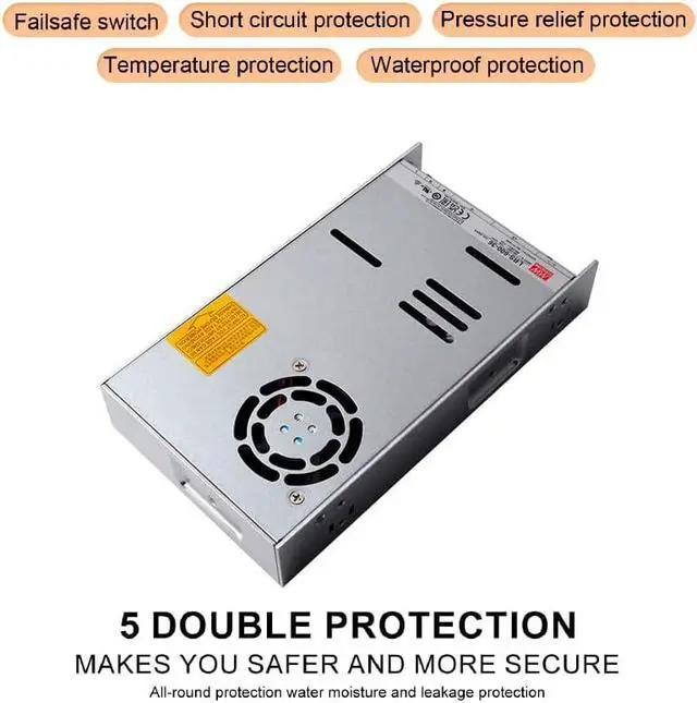 Wide Input Voltage Range and Harsh Environment Adaptability: Supports input voltages from 90-264VAC, capable of withstanding 300VAC surge for 5 seconds, proving its durability under challenging conditions.