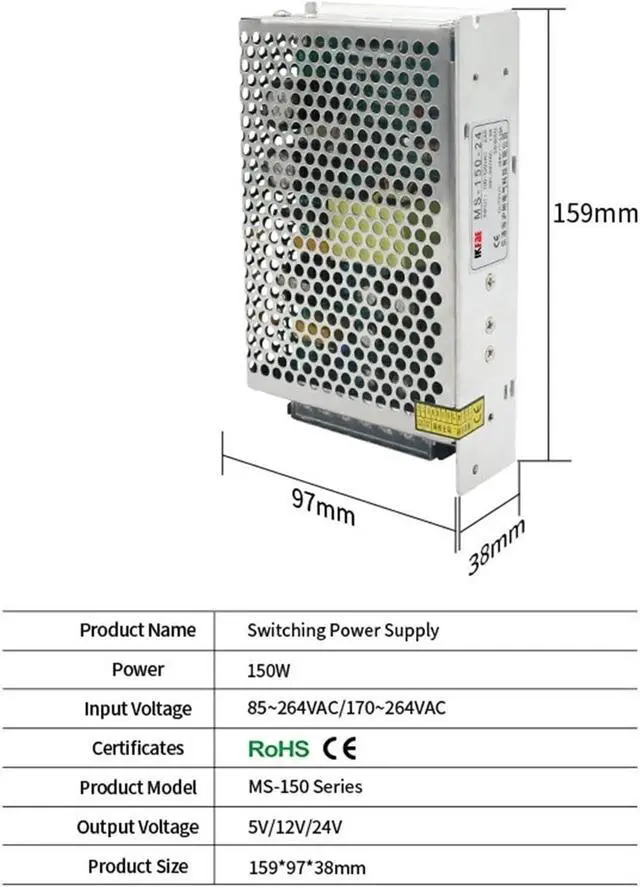 • SMPS Switching Power Supply MS-150 150W Overload Protection Single Output Small Volume Slim 5V 12V 24V Output