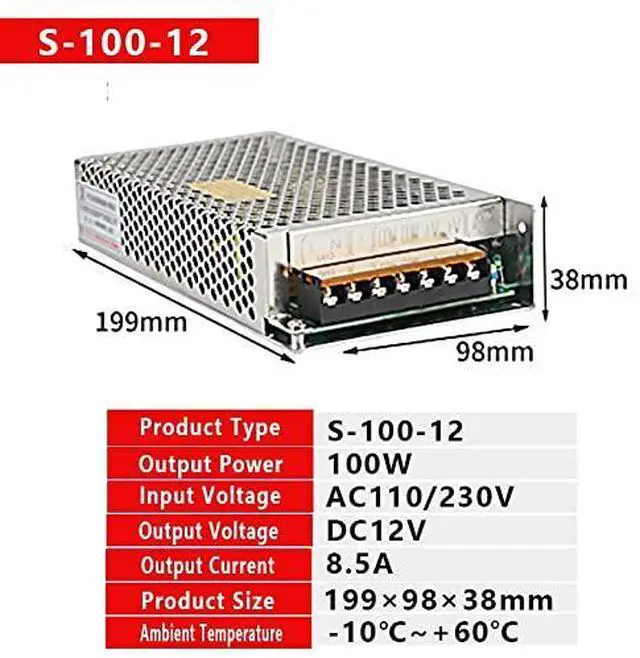 Switching Power Supply Light Transformer 100W AC 110V 220V to DC 12V/8.5A 24V/4.5A Power Supply Source Adapter S-100-12 S-100-24 (Color : S-100-12)