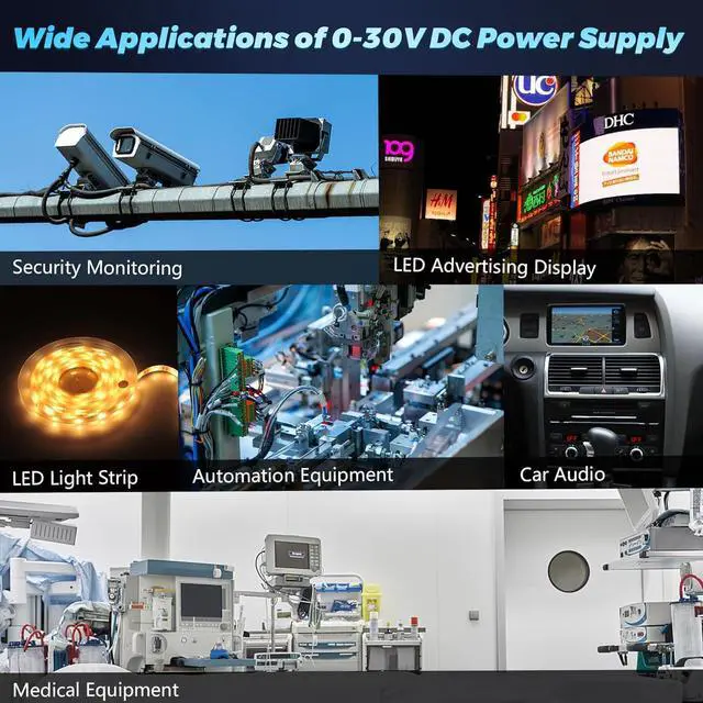 Wide ApplicationThe variable power supply 5v 12v 24v 30v widely used in industrial equipment, RV, radio/car stereos, Camper, led strip, cctv, computer project, 3d printer, motor pump(for Motor device, the SMPS should be twice of the motor's rated power), security camera, lcd monitor, lab computer and more device within 30 volt