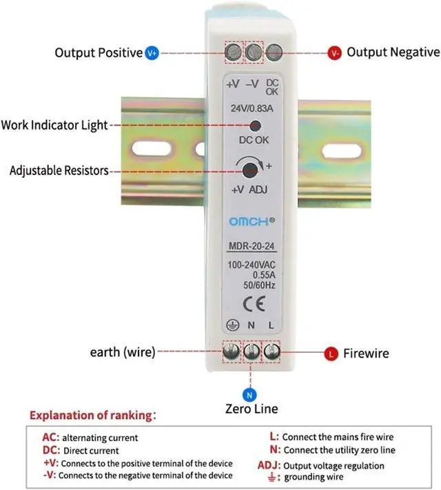 10W 20W DIN-Rail LED Switching Power Supply MDR-10/20 Overload Protection Economical Thin Manufacture 5/12/24V(MDR-20-24)