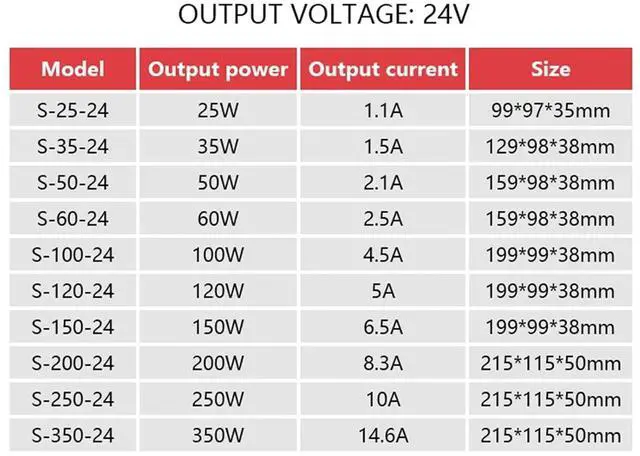 Switching Power Supply S-25/35/50/60/100/120/150/200/350W to 12V 24V Switching Power Supply(S-50-24 24V 2.1A)