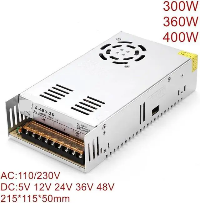 LED Power Supply DC 5V 12V 18V 24V 36V 48V 360W 400W Switching Power Supply Source Transformer 100-240V AC DC SMPS(36V 10A 360W)
