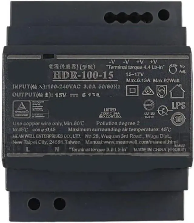 HDR-100 HDR-100-15N 97.5W 15V 85 100 Ultra Slim Step Shape ~ W DIN Rail Switching Power Supply 100