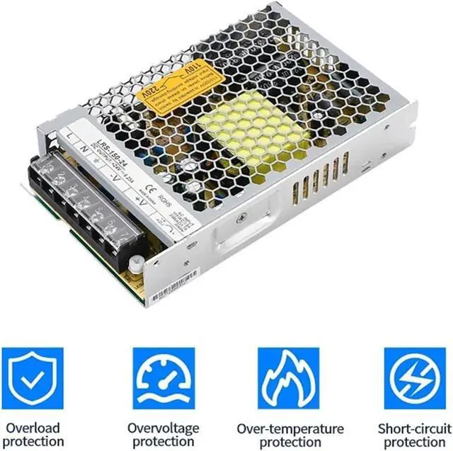 RWRAPS 150W Switching Power Supply 110V/220V AC to DC 5V 12V 15V 18V 24V 36V 48V Single Output SMPS LRS-150-12 LRS-150-24 LRS-150-48 (Size : 100-240V, Color : 24V)
