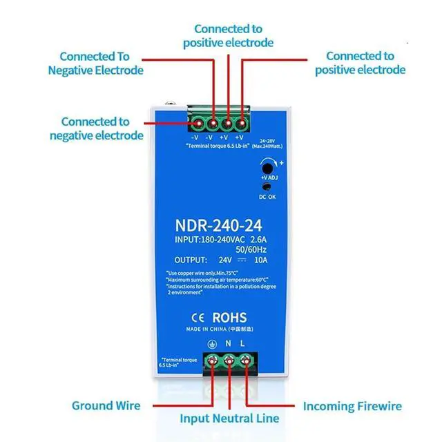 LCTC Switching Power Supply NDR-75W 120W 240W 480W Industrial 12V 24V 48V AC/DC Single Output Power Transformer 1Pcsa(NDR-240-12 12V20A)