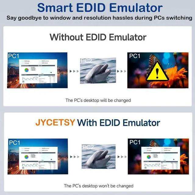 This KVM Switch Support 4K@60Hz, 2K@120Hz and downward compatible with other resolution