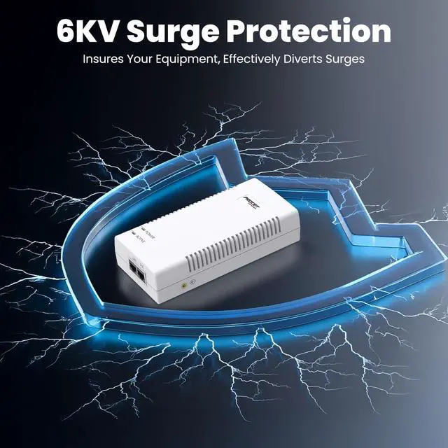 Lightning protectionPoE Surge protection. PoE port has 6KV lightning protection that are able to well keep your device safe.
