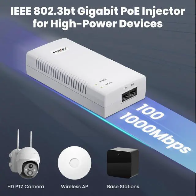 High Power Output Total up to 90W output makes it suitable for a wide range of PoE Powered Devices (PDs) such as HD PTZ Camera, IP Cameras, wireless APs, PoS system, IoT application, door locks, displays, POS, and information kiosks, base station.