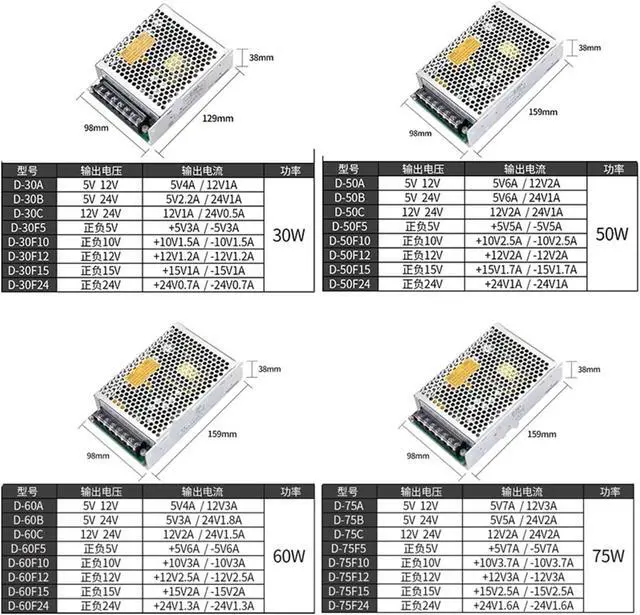 Product Specifications: This switching power supply offers various voltage and power options to suit your needs, with different combinations meeting diverse operational requirements.
