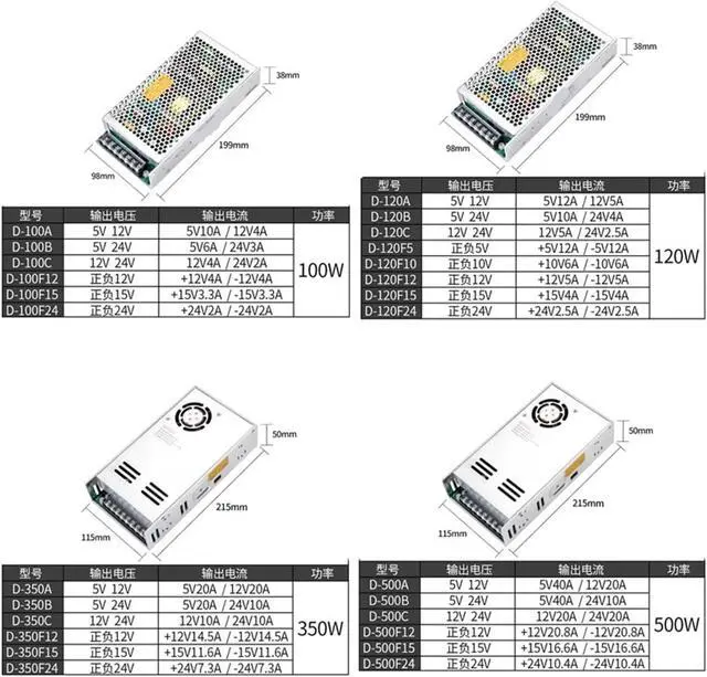 • Product Specifications: This switching power supply offers various voltage and power options to suit your needs, with different combinations meeting diverse operational requirements.
