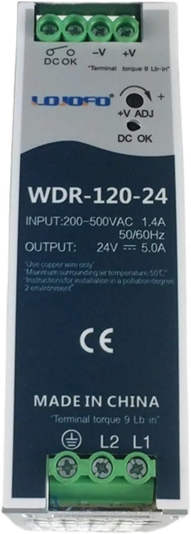 • 380VAC to 24V industrial control cabinet power supply 120W24V5A rail switching power supply WDR-120-24