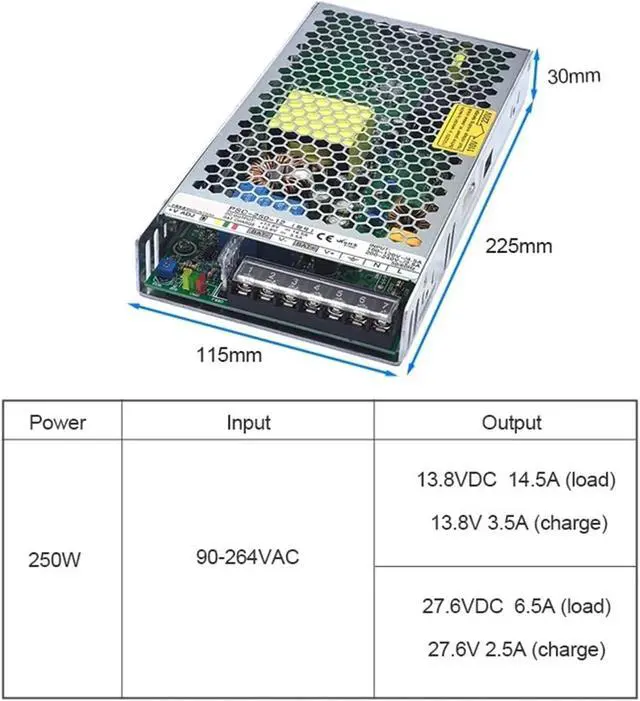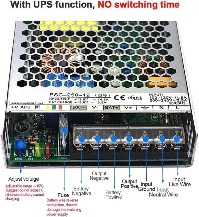 250W UPS Charging Function Switching Power Supply DC 12V 24V for Security Surveillance Camera Single Output Switch SMPS PSC-250(12V_250W)
