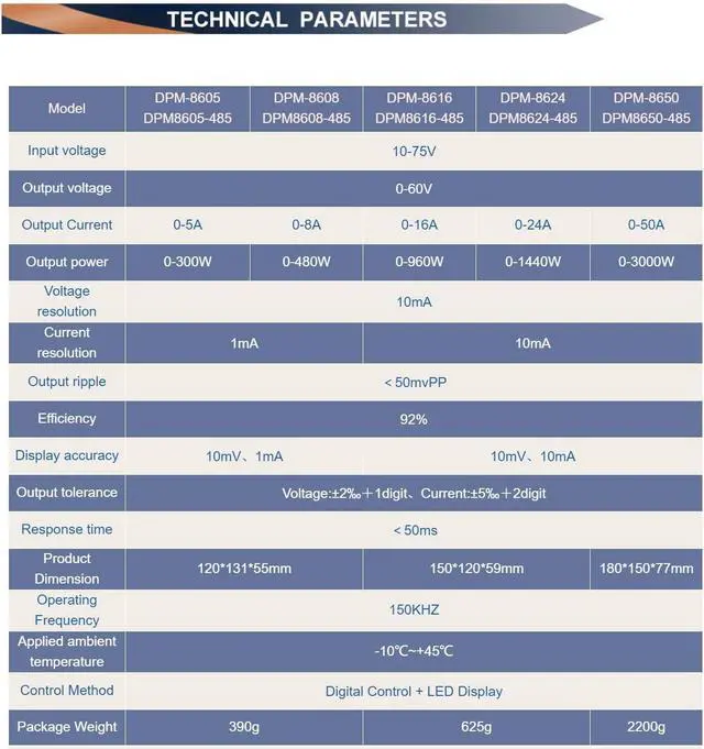 2.Input DC voltage 10-75V, with a AC-DC (AC to DC) switching power supply or battery, you can combine them into a high-precision digital adjustable DC power supply or charger.