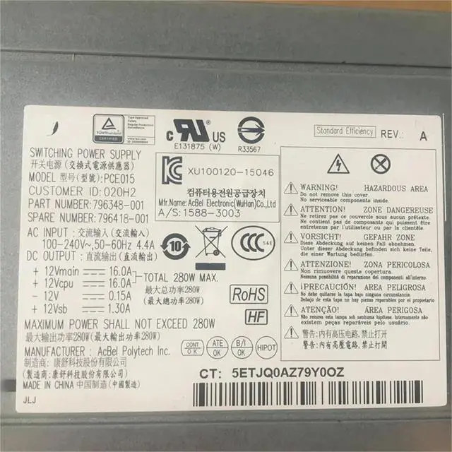 • Switch Power Supply Adapter For D14-280P1A 796348-001 796418-001 PCE015 DPS-280AB-5A PS-4281-1HA Prodesk 600
