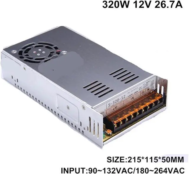 Specificate: Size:215*115*50mm WALT: 320W output voltage :12v Output Power : 301 - 400W Output Current : 25A Model Number : S-320-12V Output Frequency : 47~63HZ Output Type : SINGLE protection : Short Circuit, Over load