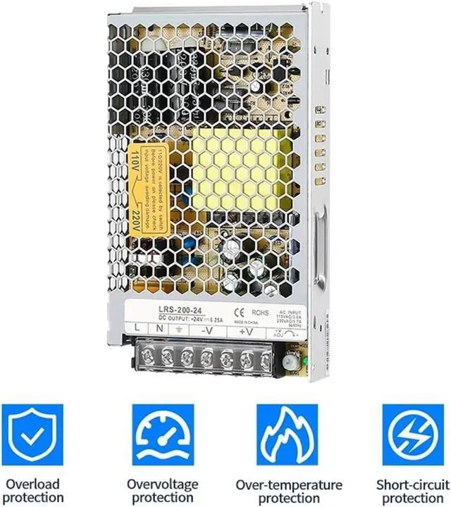 RWRAPS 200W Switching Power Supply 110V/220V AC to DC 5V 12V 15V 18V 24V 36V 48V Single Output SMPS LRS-200-12 LRS-200-24 LRS-200-48 (Size : 100-240V, Color : 12V)