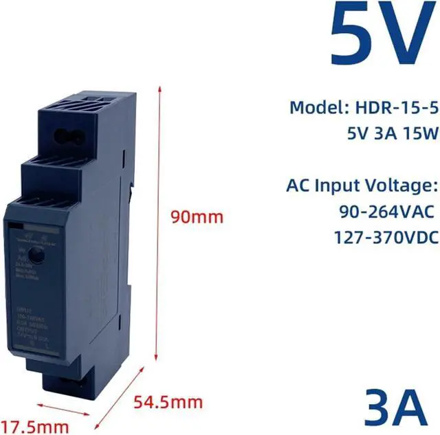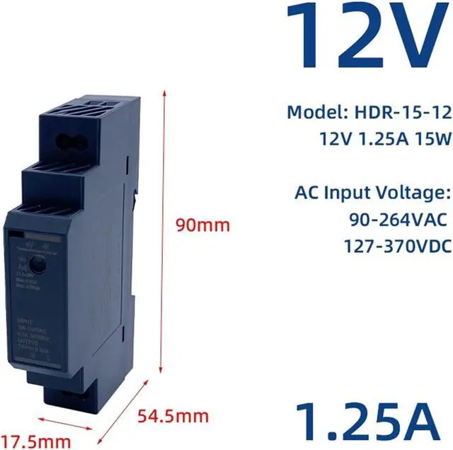 • HDR-15W 9V SMPS 110V/220V AC To DIN Rail Installation Ultra Slim Industrial Switch Power Supply