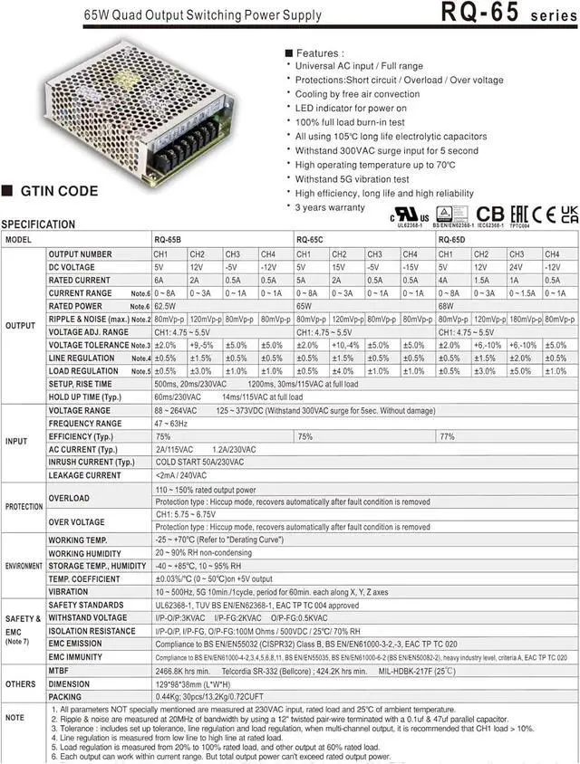 RQ-65 RQ-65B RQ-65C RQ-65D Quad Output Switching Power Supply(RQ-65D)
