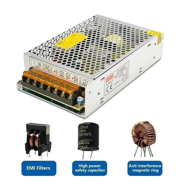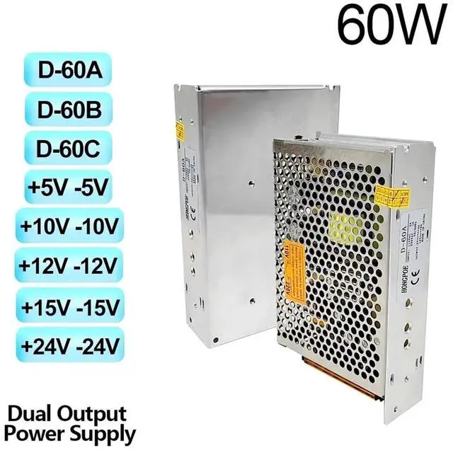Switching Power Supply Dual Output Switching Power Supply 50W 60W 75W LED Driver Transformer SMPS Input 100-240VAC DC 5V 12V 15V(D-60B 5V4A 24V1.8A)