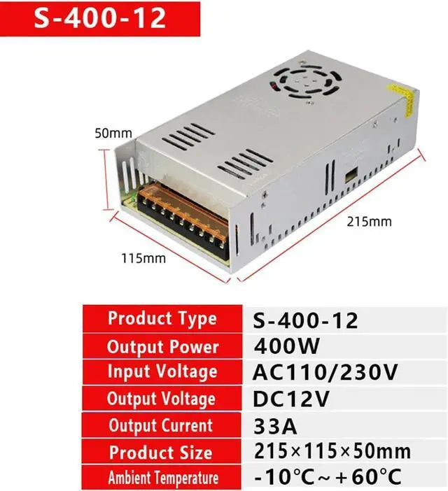 250W 350W 400W Switching Power Supply Light Transformer AC 110/220V to DC 12/ 24V Power Supply Source Adapter (Color : S-400-12)