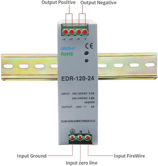• DIN-Rail 120W Switching Power Supply EDR-120 Ac Switching Adapter Input 12v 24V 48V Single Output Industrial Switch