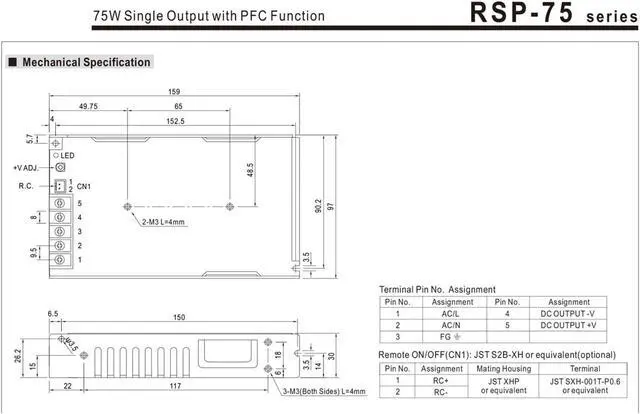 Power 75W Single Output with PFC Function Switching Power Supply RSP-75-48 48V 1.6A