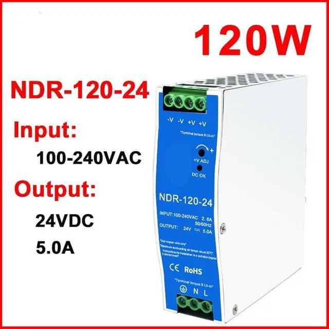 LCTC Switching Power Supply NDR-75W 120W 240W 480W Industrial 12V 24V 48V AC/DC Single Output Power Transformer 1Pcsa(NDR-120-24 24V5A)