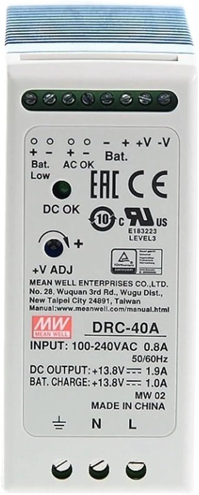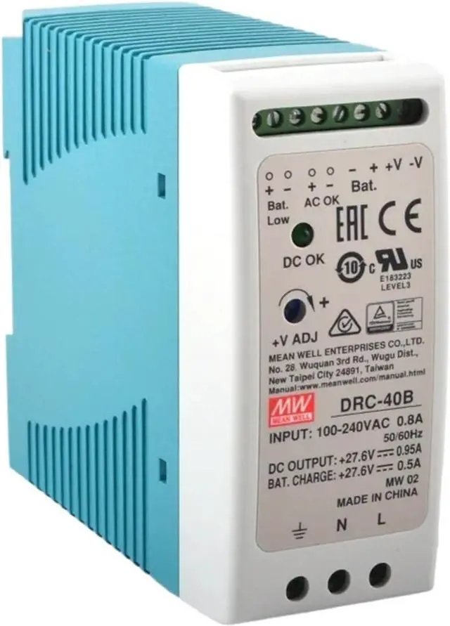 DRC-40 UPS SMPS Switching Power Supply AC DC Din Rail Type Security Dual Output 40.02W 13.8V 27.8V 1.9A(DRC-40A 13.8V)