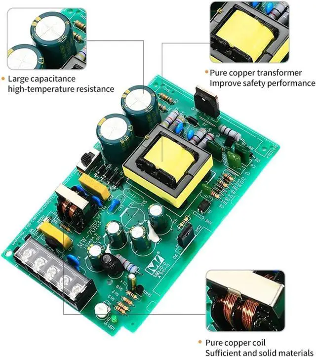 • The power supply turns out to be small in size, featuring high stability, low ripple noise and low power consumption.